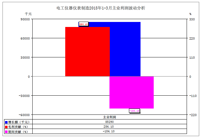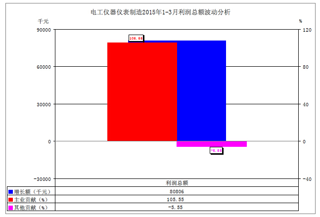 圖2、全電工儀器儀表業20151-3月主業利潤波
