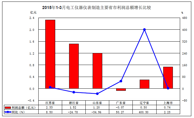 3、20151-3月電工儀器儀表業主省市盈利力比較-儀表廠家