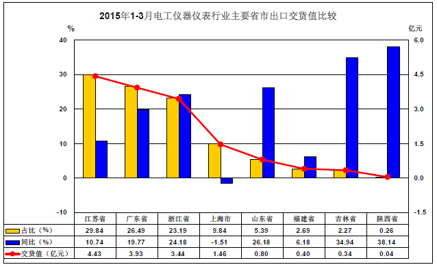 4、20151-3月電工儀器儀表業主省市口交貨值比較